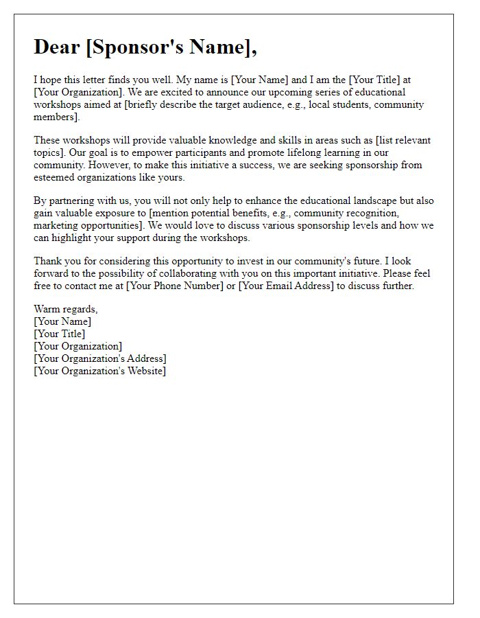 Letter template of an engaging letter seeking sponsors for educational workshops.